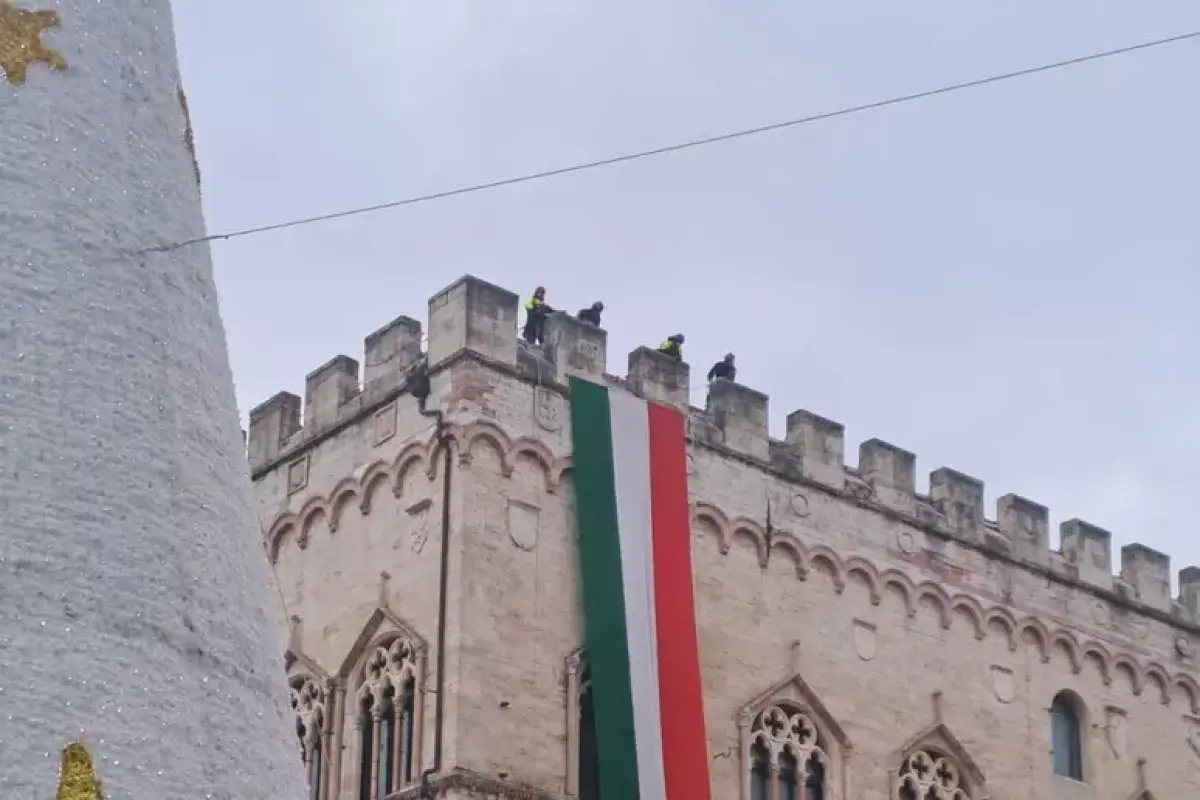 All’esterno, Piazza IV Novembre si è trasformata in un palcoscenico di dimostrazioni e attività coinvolgenti. L’esposizione dei mezzi, le performance di un’unità cinofila e l’utilizzo di un robot telecomandato hanno attirato l’attenzione di grandi e piccoli. Uno dei momenti più emozionanti è stato quando i vigili del fuoco hanno calato dall’alto una gigantesca bandiera italiana sulla facciata di Palazzo dei Priori, mentre risuonava l’inno di Mameli.